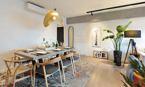 The whole unit is based on white tones and wood grain, and the details use exquisitely designed furniture and accessories. At the same time, the meticulous and complicated traditional French design is added to the axis of the modern minimalist white space concept, creating a low-key and elegant residence and a soft and comfortable feeling. The first thing that catches your eye is the lamps and lanterns placed in the dining room. The design of this project is centred on the natural wind and the casual sophistication feeling of the family. Considering the original vast wall space, we used concrete wall paint to create a characteristic wall, adding a unique urban atmosphere. The designer uses lighting and walls to make a sense of contrast with different materials, revealing a sense of style and casual luxury, creating a stylish home. The designer prefers to use a fresh and elegant design in the hall, with some natural potted plants as the focus of the whole house design. According to the preferences of family members, the designer planned bedrooms, child rooms and multi-purpose rooms. The master room has a set of toilets with blue characteristic brick walls, European-style lamps and lanterns, and neatly lined bath parts and plants. The child rooms reserve a large area for children to have fun and the wall uses characteristic natural elements and soft green that soothes the development of the eyeballs matching the dinosaurs in the forest. The kitchen is also dominated by white, with blue kitchen cabinets as embellishment, bringing out the artistic sense of the white brick wall and echoing the design of the bathroom.