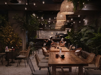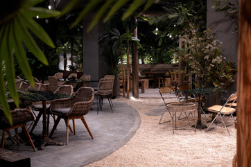 We have been trapped during pandemic and long for a trip. Thus setting a scene of tropical beach in this city centre restaurant is our biggest goal. A restaurant pub is a place to meet friends, drink and dine, to relax after a long day stress. People always feel totally relaxed in a natural environment. Widely-used exotic plants, aged woods and real coral sand, magically bring diners into a vacation experience.