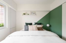 This project is a residential renovation planning case. Given the original space pattern and poor planning of the movement line in the residence, the homeowner has experienced much inconvenience in life. Through the designer’s careful evaluation and thorough planning, the original layout was delicately reorganized after close communication between the designer and the homeowner. Besides, a well-executed space arrangement was carefully planned to give the homeowner a comfortable living space. Entering the public area, one will realize that the designer’s open design approach integrates the living room, dining room, and kitchen to extend the view and create a spacious and bright space. The white color is chosen as the base, and green objects and paint are used to create a fresh and pleasant atmosphere. On top of that, the three green pieces are chalkboard walls, which the children can use to draw and doodle again. Moreover, the biblical texts are decorated on the border with iron staples, which create a literary atmosphere and symbolize the home's core values. On the other hand, the balcony is designed to be triangular in shape by shrinking, subtly expanding its efficiency. Besides, the designer arranged an island in the dining room that serves as a cooking platform, dining table, and work table, giving the space versatility. Moving slowly to the private bedroom space, one will notice that one is the primary bedroom for the couple, and the other is the children's room. Also, the children's room is designed as a bunk bed room with separate bedside cabinets for storage. The height of the upper bunk is deliberately raised so that the lower bunk has more space for storage. The bathroom is divided into three parts to provide a convenient space for the family.