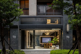 A space can encapsulate memories, while the designer’s careful touch can shape the container of life, allowing one to collect important moments of daily living. Holding on to this belief, Xingshi Studio wishes to present itself with a trustworthy impression and professional attitude to its customers, through a comfortable, open-plan and luminous office design. With the use of wood, natural stone flooring, metallic materials as the basis, the overlapping geometric shapes and lines as the main elements, features of high-rise, floatiness, hollowness and warm lighting contribute to the overall atmosphere. In addition, good natural lighting and ventilation nicely set off the elegant environment. Lines and shapes are integrated everywhere, while warmth of lights holds the display carefully. All the details are meant to speak for the profession. The space is divided into the office and the meeting area. A big-sized floor-to-ceiling glass panel introduces the greenery from the outside, allowing customers to see the picture frame of the company before entering. The irregular, quasi-oval, geometric shape of the table is supported by three metallic pillars to create an interesting visual focus. The vertical lattice, horizontal shelving, and parabola trajectories on the ceiling interweave into diverse paintings from different perspectives. The cabinets at the back are presented to be floating and hollowed to make storage and display less bulky but much more lively. In the middle of the space, there is a TV partition standing horizontally from the side wall, facing outwards for display but also to keep privacy, boost ventilation and introduce sunlight from upper and lower sides. The long perpendicular table and strip lights in the office area guides the visual attention to the big table at the end. The ceiling mounted shelves above ingeniously improve the space efficiency.