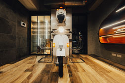 The designer used stone slabs, commonly found in lawns, as the wall design for the entryway and added the outline of linear lights to it. Inside the house, the designer incorporated various style elements, such as the owner's favorite Vespa motorcycles, brassware, collectibles, music, bar, and more, into the space, making it not only a resting place but also a space for art and culture. In the dining area, the designer disassembled an old Vespa motorcycle, retained the light function with a special technique, and allowed users to turn on the light source directly from the grip of the motorcycle to use it as a night light.