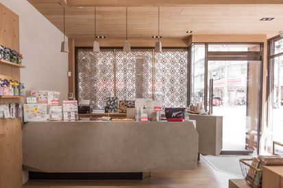 The project is a renovation of a pre-owned space over 30 years old. The space is not planned as a normal commercial space but as a child-friendly store. The design team uses tatami mats to turn the store into a space that adults and children would love. They also boldly adopt the elevated design with tatami mats to create a casual, relaxed feeling as if at home. Customers can easily and comfortably browse through the products.