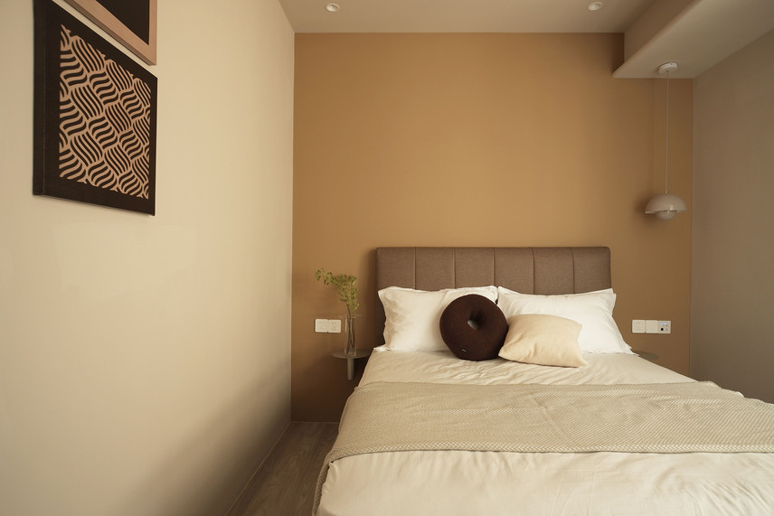 To strike a balance between wabi-sabi style and functionality, the design team cleverly planned the placement of furnishings, curved angles, and materials to reveal a better visual effect between solid and void. When the user stands in the space, he or she can feel the integrity of the interior. The articulation of the façade with no interruptions makes the space more natural and beautiful. The upgrade of the study room is also one of the highlights of the project. The comfortable couch with adjustable curtains allows the study room to serve as a guest bedroom at the same time to improve space utilization.