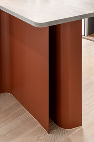 Above the meeting room, a large beam passes through, and to prevent the ceiling from feeling oppressive, we have designed curved formations, visually mitigating the prominence of the structural beam.